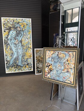 crouching figuration in a floriated setting (2008) 2x2 paint on board $2,250